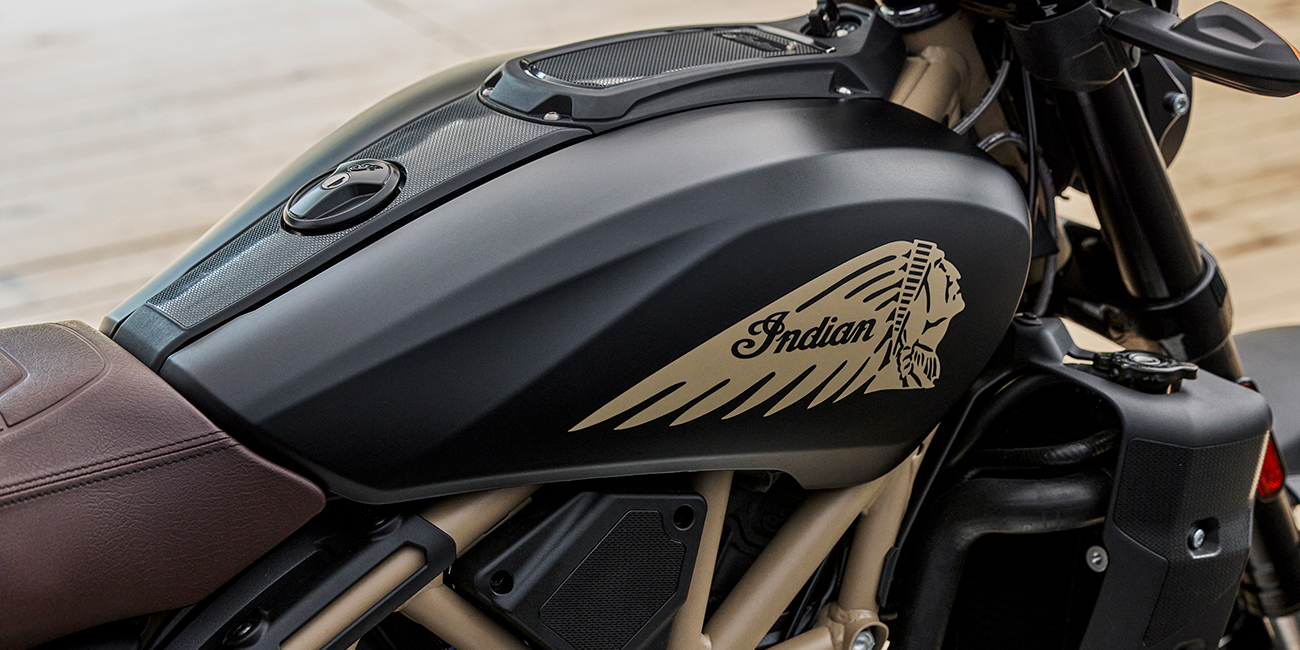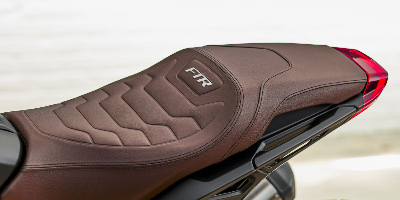 Med en fullt justerbar 43mm inverterad framgaffel och en enkel, lättåtkomlig bakstötdämpare, sticker FTR ut ur mängden. Två stora 4-kolvsok greppar dubbla 320mm skivor som skapar enorm bromskraft. Du kan lätt bromsa upp hojen på framhjulet med två fingrar, så bromsa försiktigt.